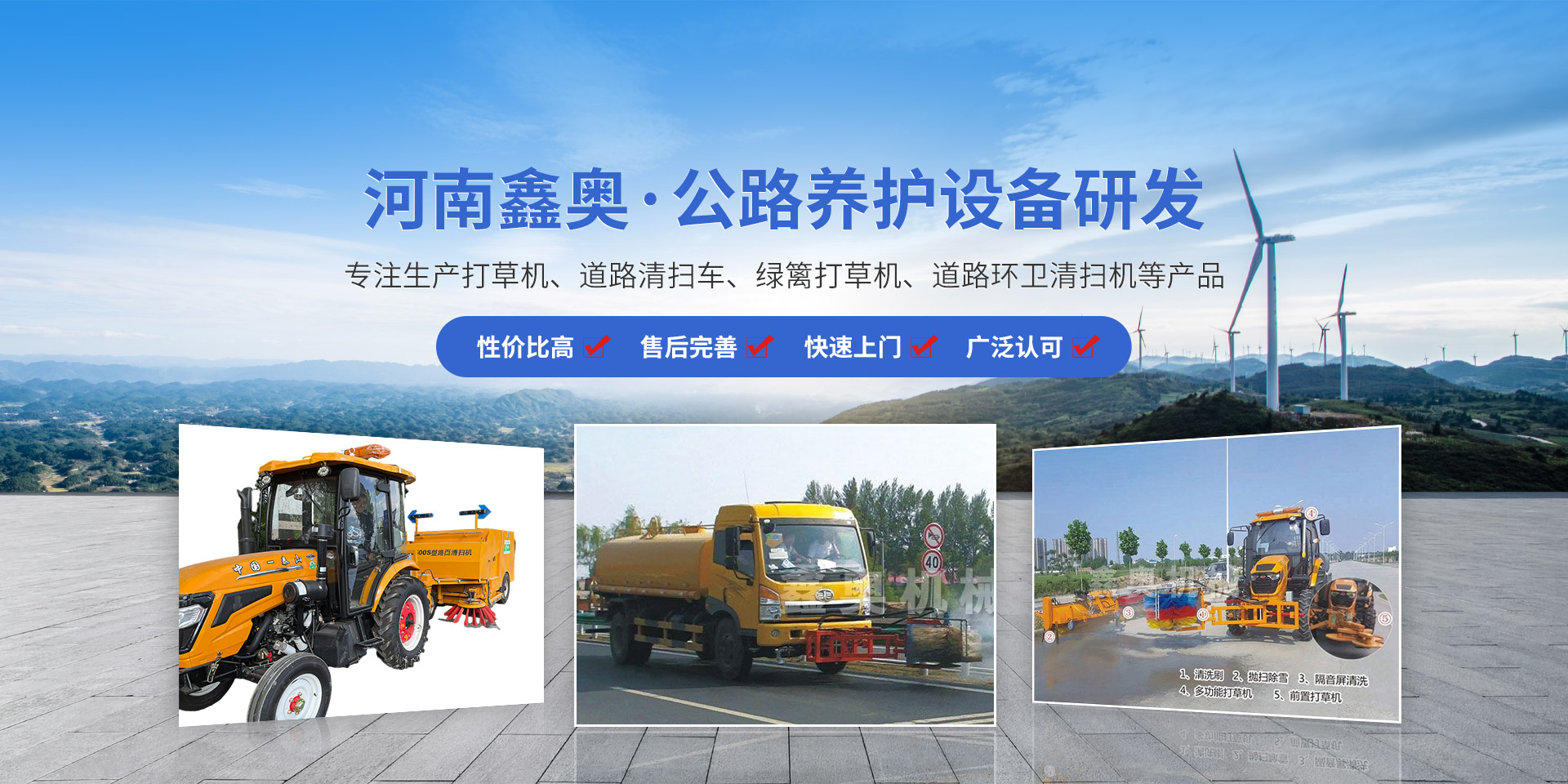 河南鑫奧機械制造有限公司位于“森林城市”京廣鐵路大動脈貫穿而過的新鄉。是一家生產打草機、道路清掃車、綠籬打草機、道路環衛清掃機等產品的公司,集研發、制造、營銷及技術服務為一體的新技術企業。